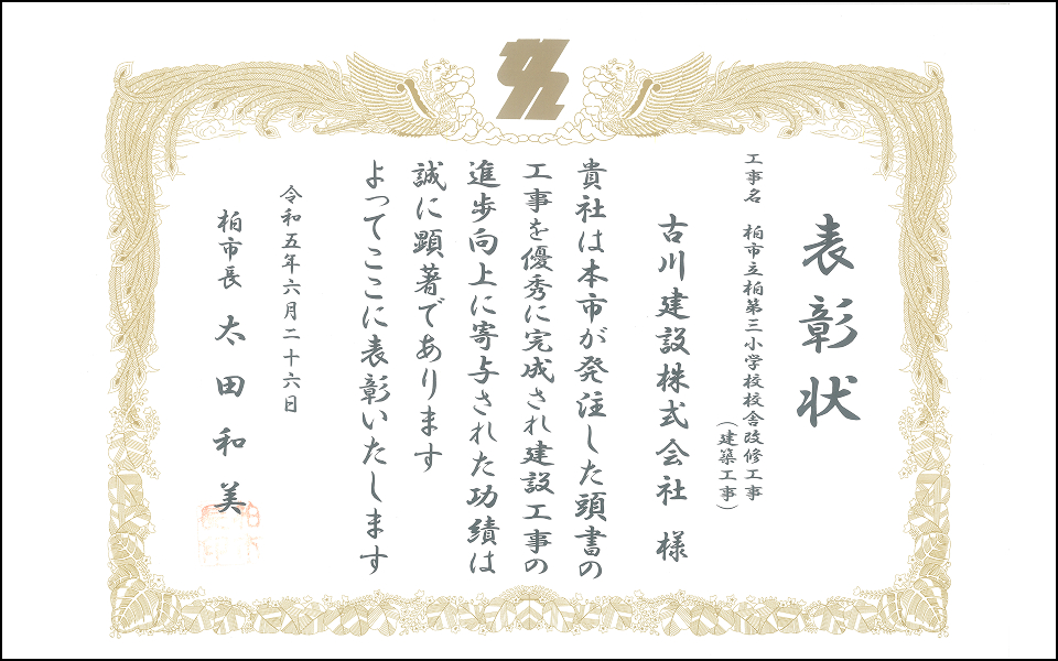 令和5年度柏市優良建築工事表彰 工事名:柏市立柏第三小学校校舎改修工事(建築工事)